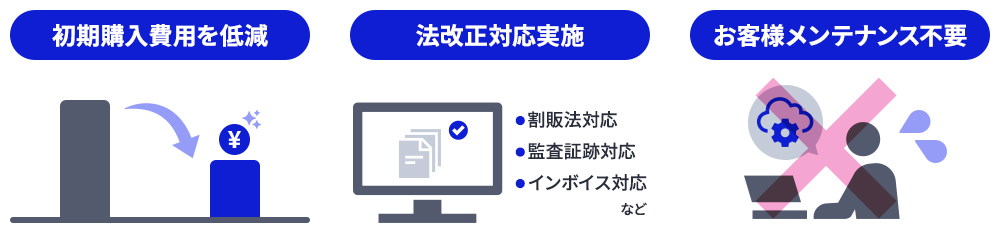 システム基盤のメンテナンスや法令対応もサービス側に任せられる。