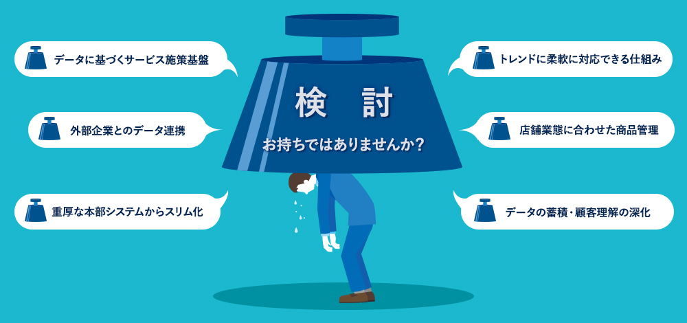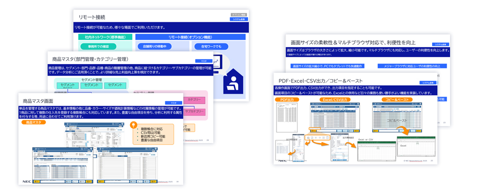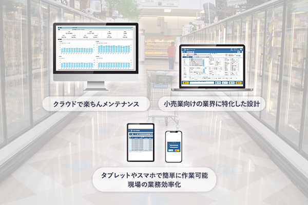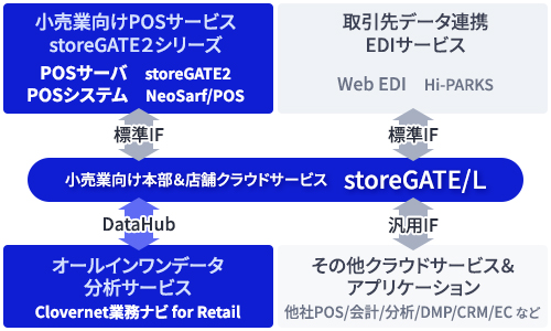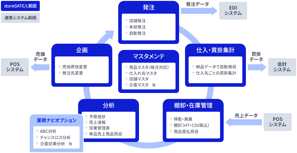 専門小売業様に必要な様々な機能を有しています。他システム連携を予め想定した設計になっていますので、短期間・低コストでの導入が可能です。