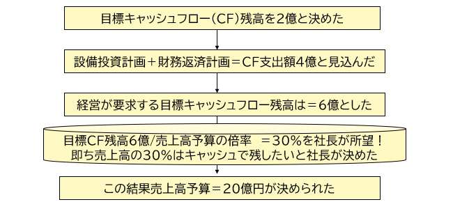 図表5-2:キャッシュフロー経営を標榜するB社社長は目標キャッシュフロー6億からの売上高要求は20億に