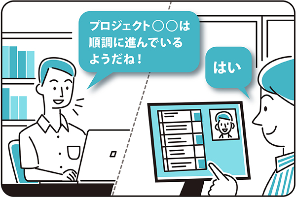 ところがオンラインのビデオ会議やチャットは、時間をはじめとするリソースの節約や要点を的確に伝えることには向いていても、何気ない声かけや、複数の人を自然に巻き込んだ会話を生み出すのは難しい。OJTを行う側が適切なタイミングで観察を行い、新入社員が今どのような仕事をしているのか、仕事の進め方やスピードはどうなのかといった業務状況を把握することも困難だ。顔色や表情、在宅勤務時の環境なども、オンラインのコミュニケーションでは確認が難しいだろう。