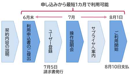 お申し込みから最短1カ月でご利用開始できます。ご契約についてはお問い合わせください。