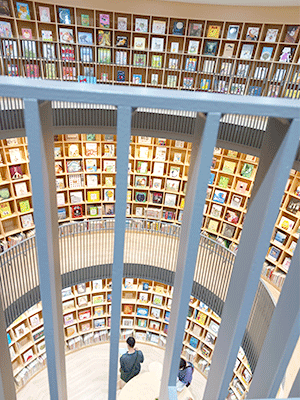 今回は、そんな鹿児島中心市街地活性化策として天文館に建てられたセンテラス天文館の4-5階に開館した鹿児島市立天文館図書館と、福祉の社団法人が運営する「かもいけみらいの森」の中にある「えほん図書館」の報告です。