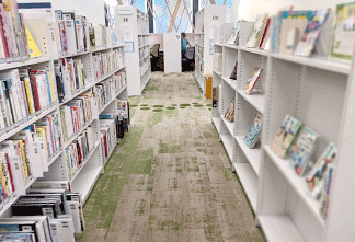 指定管理者が決まり、案内いただいた三浦なつみ館長が赴任した時、建物はほとんど出来上がっている状態でした。そんな中で3階の児童エリアの書架で考慮したのは、おおよその年齢の流れになるようにということでした。絵本書架(特に靴を脱いで使うはだしスペース)の場所は決まっていたため、絵本→読物→知識と使う年代が自然と変化するよう配架しています。